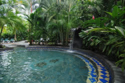 Shortly after breakfast, your rental car will be delivered to begin 4 hour journey to the Arenal Volcano, one of the world's most active. Stop for tour and lunch at La Paz Waterfall Gardens. When you think about Costa Rica, you probably imagine lush tropical Rain Forests, flowing white rivers, spectacular waterfalls, birds, butterflies and flowers. At La Paz Waterfall Gardens, you will see all that and more. Afterwards, continue on to Arenal and stop for a relaxing soak and dinner at the thermal pools of TABACON HOT SPRINGS, whose warm, mineral-rich waters are heated within the volcano. Overnight at Arenal Lodge (or similar) where you will have a spectacular view of the volcano's nighttime eruptions. (B, L, D) |